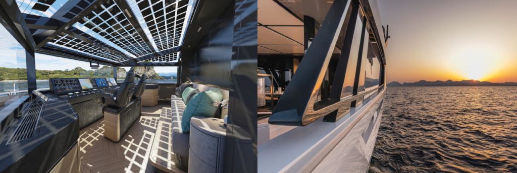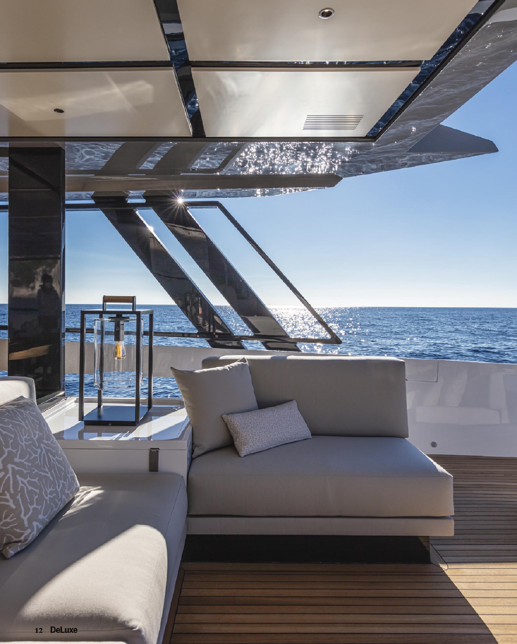 Viides A115-jahti edustaa parhaimmillaan Arcadia Yachtsin perimmäisen filosofian ydinajattelua. Sen mukaisesti Hot Lab Yacht & Design -suunnittelutoimisto ja asiakas tekevät yhdessä kaikki tärkeimmät valinnat jahdissa, jonka sisä- ja ulkotilat on suunniteltu sulautumaan toisiinsa mahdollisimman saumattomasti. Paras esimerkki sisä- ja ulkotilojen harmoniasta on jahdin yläkansi. Siellä 140 neliön pinta-ala on suunniteltu yhdeksi yhtenäiseksi ympäristöksi, jonka sydämessä on oma ”talvipuutarha” ja lattiasta kattoon ylettyvät ikkunat. Niiden välityksellä saa läheisen ja välittömän yhteyden mereen kaikkina vuodenaikoina.